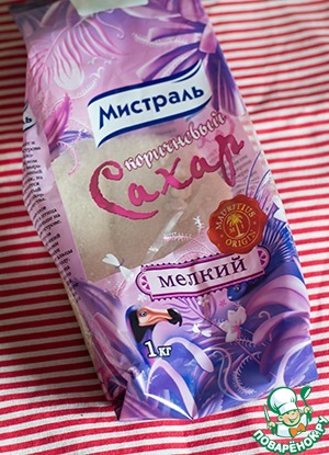 Я использовала сахар "Мистраль" мелкий. Как видите, это мой самый любимый сахар, его почти не осталось :)