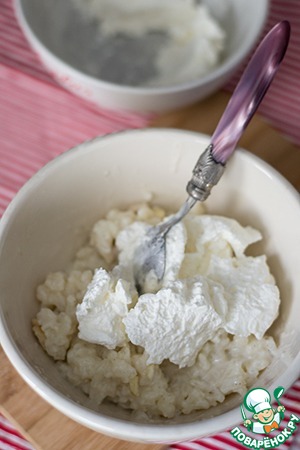 Отдельно взбейте сливки в крепкую пену. Тоже добавьте их в десерт, деликатно перемешивая.