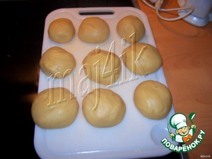 Разделить на 9 частей и скатать в шарики. 1 шарик должен быть меньше чем все остальные. -