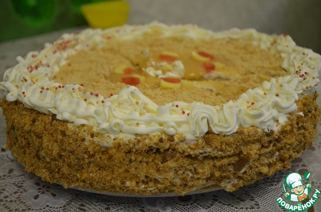 Оставшийся коржик натерерь на тёрке и посыпать сверху.