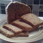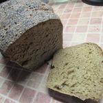 А это разрез хлебушка на следующий день. Он действительно режется очень хорошо, можно тонкими ломтиками нарезать и почти не крошится. Корочка уже не хрустит.