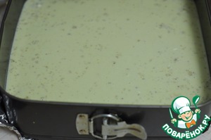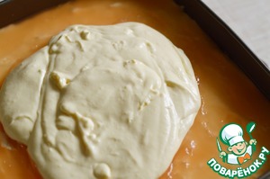 • 5. Вынуть форму из холодильника, на апельсиновое желе вылить половину мусса и убрать форму в холодильник.