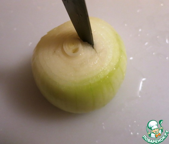 Подготовить луковицы: почистить, срезать верх и низ.
