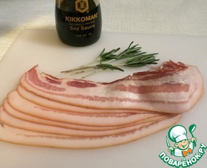 Веточки розмарина заострить с одного конца, приготовить отложенный бекон.