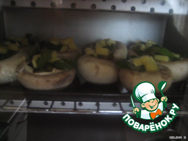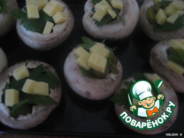 • Заполняем шляпки: чеснок, огурчик, петрушка, сыр