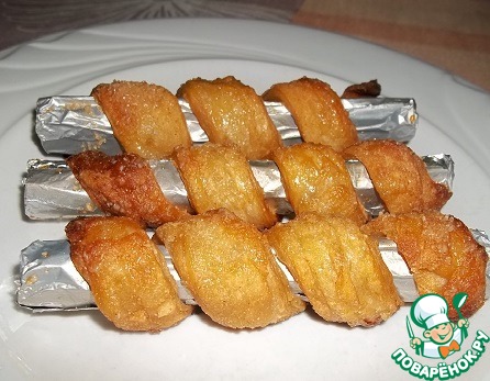 • Делаем из картона трубочки длиной 10 см. Оборачиваем их в фольгу. Смазываем растительным маслом.