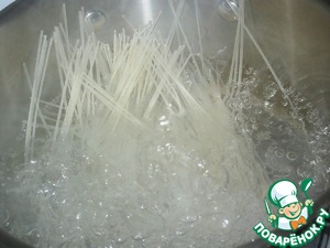 Отварить рисовую лапшу на пару минут меньше, чем указано на упаковке.