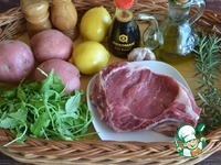 6. Рукколу полить смесью оливкового масла и лимона, посолить и поперчить. Подавать мясо с розмариновой картошкой и заправленной рукколой.