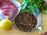2. Смешать соевый соус с оливковым маслом, пропущенным через пресс чесноком и лимонным соком, добавить перец, хорошенько размешать. Полить антрекот получившимся маринадом, закрыть пищевой пленкой и оставить на ночь в холодильнике.