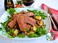 Сколько бы хитрых рецептов мы ни придумывали, мясо с картошкой и зеленью – это классика, которая никогда не выйдет из кулинарной моды. Попросту это очень вкусно. Антрекот, промаринованный в смеси соевого соуса, лимонного сока и оливкового масла, становится очень мягким, нежным и приобретает пикантный вкус. Хрустящая картошка с ароматом розмарина – прекрасный гарнир для такого мяса, а руккола придает свежести и терпкости.