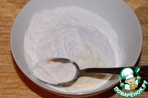 Смешать муку пшеничную, разрыхлитель теста и крахмал.