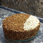 Выпекать при t= 180 примерно 25-30 мин. Вынуть из формы. И выпечь вторую порцию. Коржи остудить.