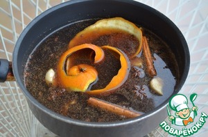 1. Положить очищенный чеснок, очищенный и порезанный тонкими пластинами имбирь, звезды аниса, палочки корицы, сечуанский перец, «Пять специй», чили, вино, соевый соус, кожуру апельсина, воду, устричный соус и сахар в большую кастрюлю с толстым дном и поставить на большой огонь. Довести до кипения, снизить температуру до средней и добавить куриные грудки.