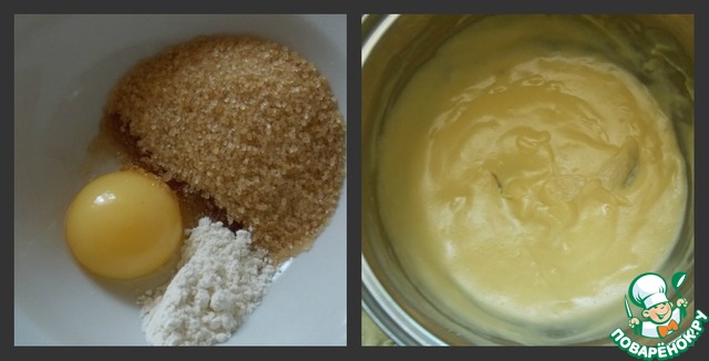 Желток растереть с сахаром и мукой. Молоко подогреть и добавить ванилин. Влить немного молока в желток, перемешать. А потом влить в молоко и варить до загустения постоянно помешивая. Соус снять с огня и остудить.