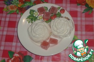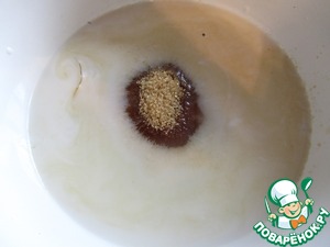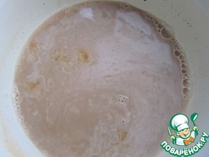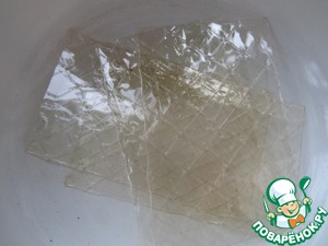 Желатин залить молоком для набухания. У меня пластины, я замачивала на 7 минут.