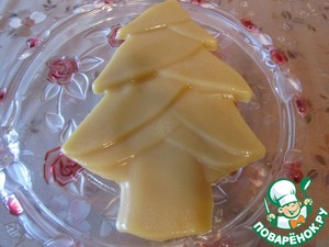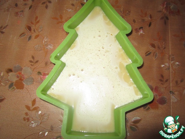 Желатиново- медовую массу вылить в форму. У меня форма силиконовая в виде ёлочки. Убрать желе в холодильник на 1,5 - 2 часа.