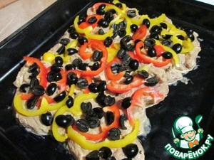 - Перец болгарский (я взяла по половине разных цветов) — 1 шт