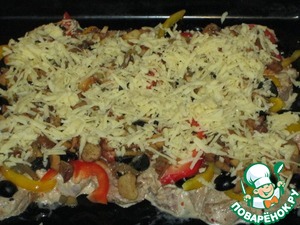 Посыпаем сыром и запекаем в разогретой до 200 градусов духовке 40-45 минут
