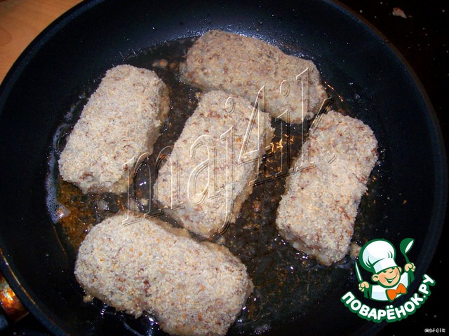 Обвалять в сухарях и жарить в маcле с двух сторон до готовности.