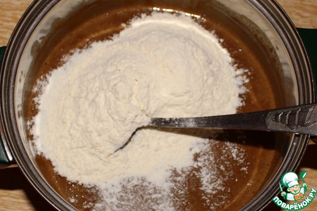 Добавить 6 ст. л. муки пшеничной с маленькой горочкой.