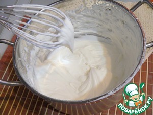 Холодные сливки взбить ручным или стационарным миксером до средних пиков.
