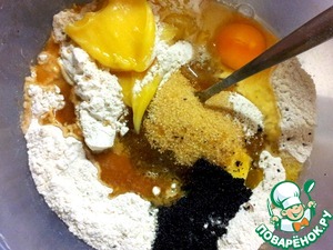 Разбить яйца и выложить мак. Его я замачивала в горячей воде.