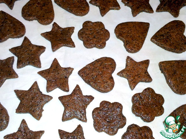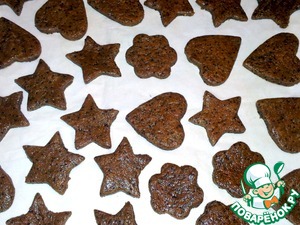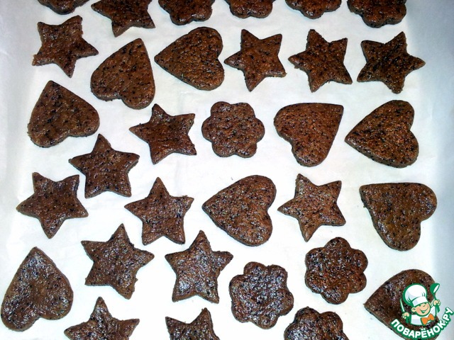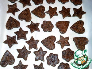 Вырезанные заготовки разложили на противень покрытый пергаментом и поставили выпекать в разогретую духовку на 10 минут при температуре 180 градусов. Этого времени при такой температуре достаточно. Горячее печенье мягкое, но когда оно остынет, низ и верх печенья будут твёрдые, а серединка останется мягкая.