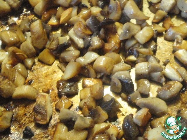 Далее обжариваем грибы. Летом советую вместо грибов взять баклажан, выходит очень вкусно.