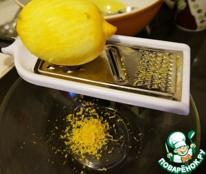 • Натираем на тёрке цедру лимона, аккуратно и очень внимательно, натираем только желтую честь кожуры, белая даст горечь.