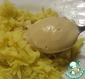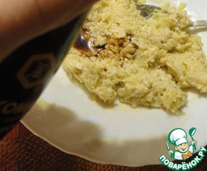 Я уже писала о подсаливании овощных слоев. Так вот, в картофельном я использую вместо соли соевый соус. Он очень хорошо сочетается с картофелем и придает ему неповторимый вкус. Добавляем сначала чайную ложку, мешаем, пробуем и при необходимости добавляем еще.