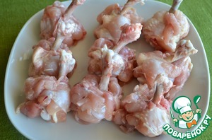 3. У крылышек отрезать верхнюю фалангу. Подрезать мясо сверху второй фаланги кухонными ножницами и ножом соскоблить его вниз кости. Кость второй фаланги отломать, обрезать жир и ножом или пальцами опустить мясо на низ косточки. (Постные обрезки и кости можно оставить на бульон). Это не самый простой процесс, но вашим гостям не придется обгладывать кости и пачкать руки. Кроме того, мясо с крылышек цельным куском – это очень вкусно. Поэтому, если вечеринка не очень большая, то можно постараться. (На сто человек такое, конечно, делать не стоит. По крайней мере, в одиночку)