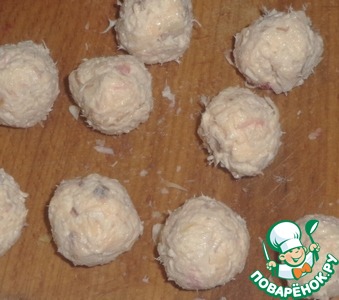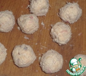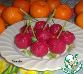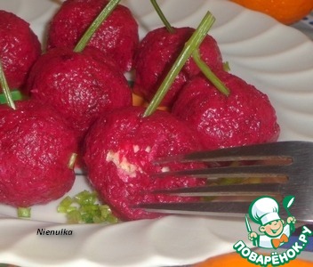 Мясные шарики покрываем свекольной массой и формируем шарик. Делаем веточки из петрушки.
