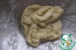 Даем тесту немного остыть (оно не должно быть обжигающе горячим) и начинаем по одному добавлять яйца, перемешивая все вручную или блендером. Мне нравится последний вариант. Яйца очень советую добавлять по одному, ведь у нас всех разная мука, и размер яиц. Нужно ориентироваться на консистенцию теста, она должна напоминать заварной крем и при отсаживании кондитерским шприцом держать форму. Я не соблюла это правило и поплатилась необходимостью отдельно заваривать муку и загущать тесто.