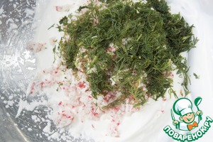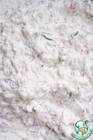 Для меня крабовые палочки это чуть ли не единственная вещь, от которой я не могу отвыкнуть в рамках здорового питания. Позволяю себе их только по праздникам, но обязательно хоть в одном блюде позволяю. На мелкой терке натираем крабовые палочки и мелко нарезаем укроп. Добавляем их в таком виде в сырную массу.