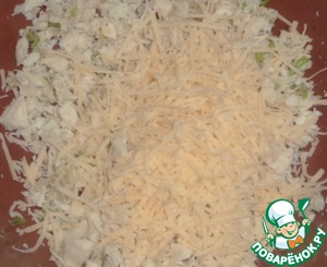 Добавить тертый сыр. Добавляем майонез и перемешиваем.