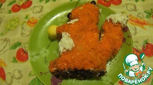 Довольно оригинальный салат в виде красивой зверушки - белочки. Салат красиво смотрится и к тому же полезный. Легко украсит праздничный стол. Ваши гости останутся довольны как с визуальной, так и вкусовой стороны салата. К тому же готовится довольно легко.