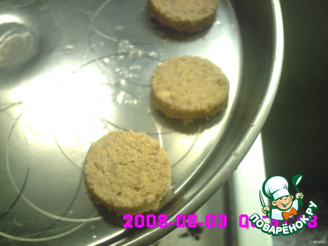 Лепим котлетки размером с грецкий орех и слегка сплющиваем их. У меня было специальное устройство.