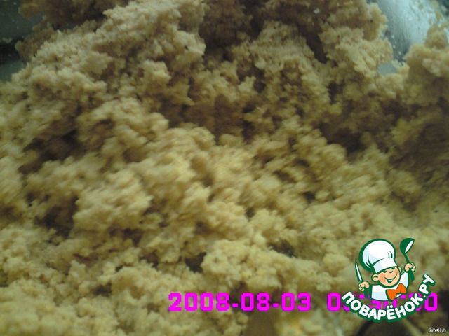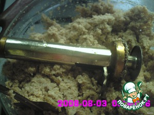 Воду слить. Пропускаем через мясорубку 1-2 раза (можно измельчить в блэндере). У нас получается масса, похожая на мелкую крупу.