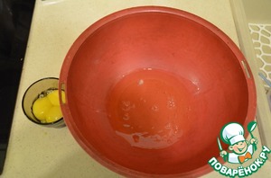 Отделить белки от желтков. Белки взбить в густую пену, постепенно добавляя сахар.