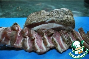 1. Начнем с мяса. У меня была замечательная мясная-премясная соленая грудинка. Но вполне можно использовать и сало с мясными прожилками.