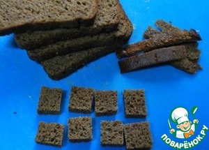 3. С черного хлеба срезать корочки и нарезать кубиками.