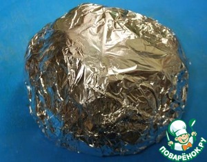7. Накроем фольгой и аккуратно обомнем, подвернув края под срез. У нас готов «постамент» для наших канапе - два замечательных полушара.