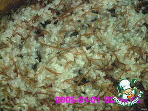 Когда рис почти готов, перемешаем его, так как вермешель всплывает наверх, если надо, долить немного бульона или воды.