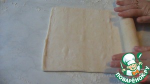 2. Раскатываем первый пласт теста. Чтобы тесто не прилипало, необходимо добавить немного муки.