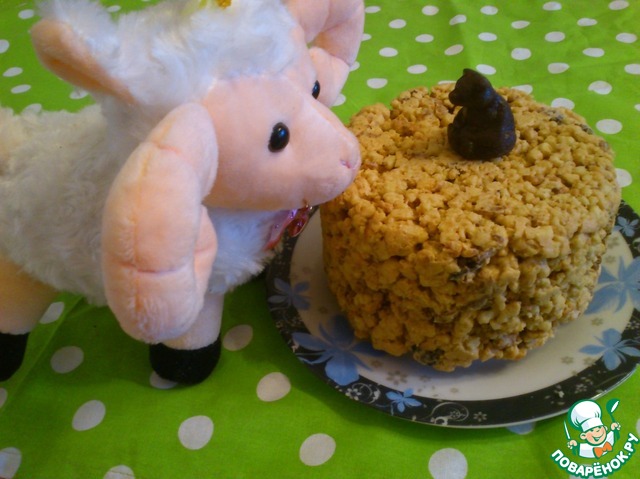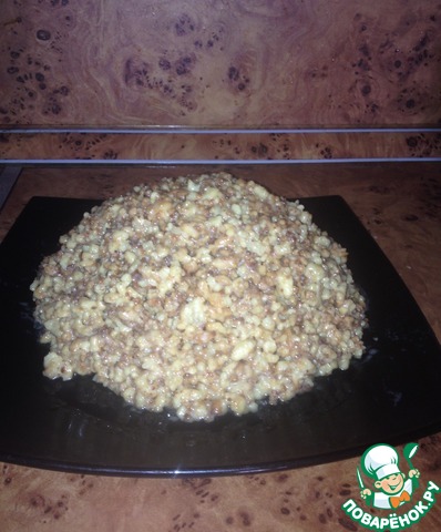 Берем блюдо и выкладываем полученную массу горкой. По желанию можно посыпать маком - так будет больше похоже на настоящий муравейник. У меня, к сожалению, его не нашлось.