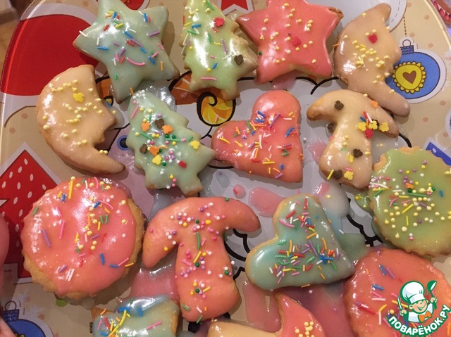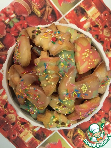 Очень вкусное, праздничное и красивое печенье! Оно понравится всем! Так же украсит оно и Ваш новогодний стол! А в приготовлении и в украшении Вам помогут ваши маленькие помощники!