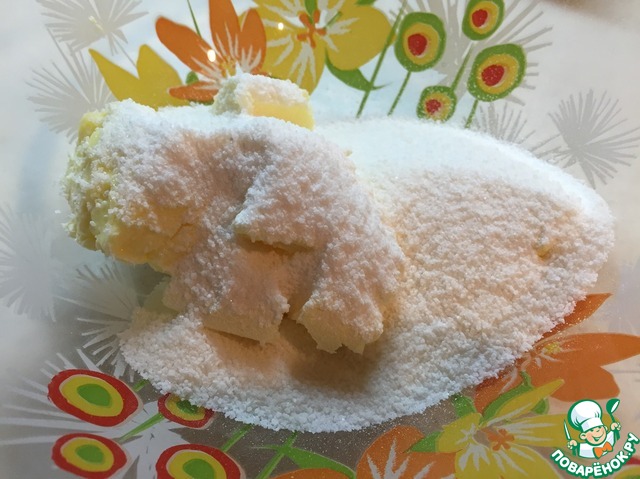 Формируем шарик из теста. Кладём в тарелку и накрываем пищевой плёнкой. Ставим в холодильник на 30 минут.