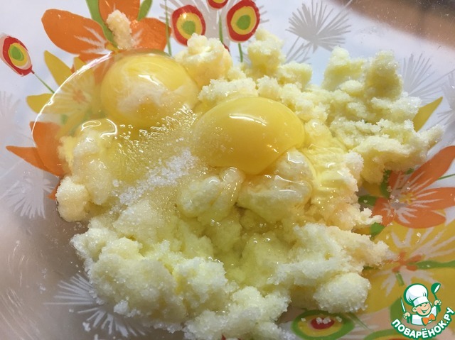 Добавляем туда же ванильный сахар и яйца. Взбиваем.
