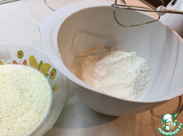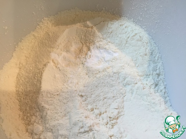 В отдельной чашке просеиваем муку, соль и разрыхлитель.