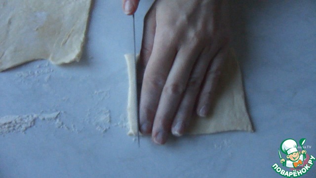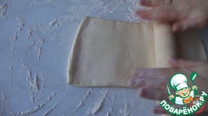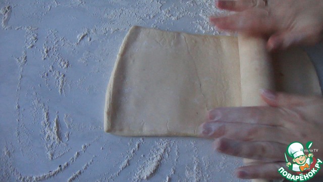2. Добавляем немного муки, чтобы тесто не прилипало. Раскатываем тесто примерно до 3мм.
